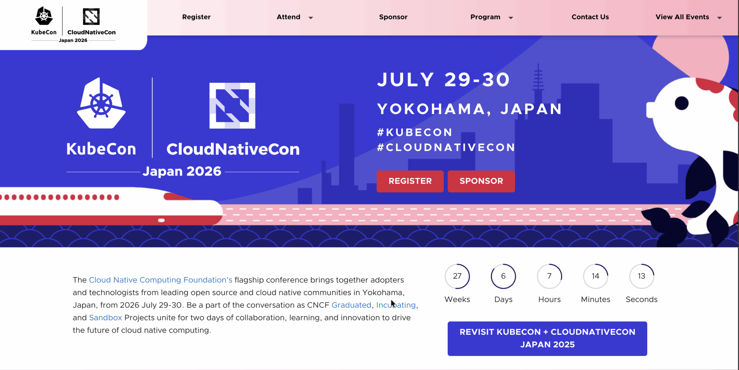 29 July - 30 July KubeCon + CloudNativeCon Japan 2026 KubeCon + CloudNativeCon Japan Date: 29th - 30th July || Mode: In-person || Location: Yokohama, Japan Event Category : Events of Interest