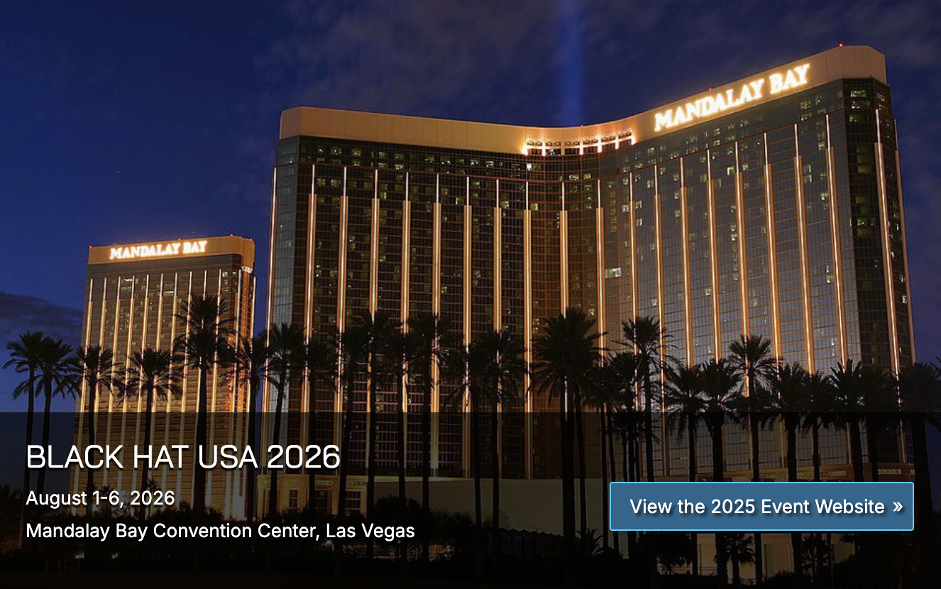 1 August - 6 August Black Hat USA 2026 Black Hat USA 2026 Dare: August 1-6, 2026, Mandalay Bay Convention Center, Las Vegas Event Category : Events of Interest