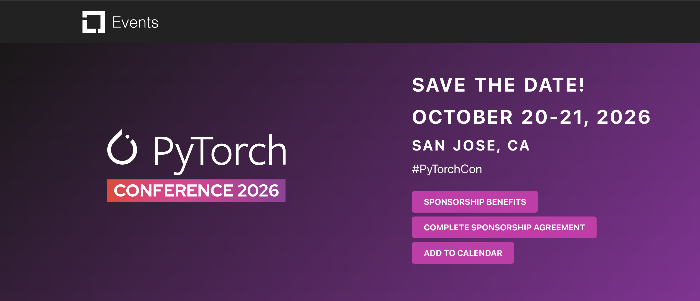 20 October - 21 October PyTorch Conference 2026 PyTorch Conference 2026 Date: 20th - 21st October || Mode: In-person || Location: San Jose, California, USA Event Category : Events of Interest
